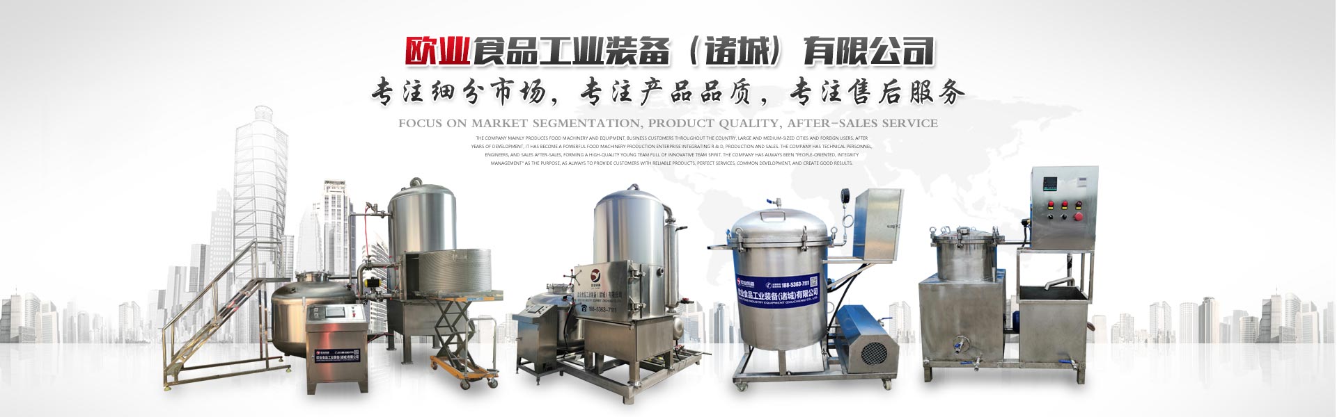 歐業(yè)食品工業(yè)裝備(諸城)有限公司主要以生產(chǎn)食品機(jī)械設(shè)備為主,業(yè)務(wù)客戶遍布全國各地大中小城市及國外用戶。經(jīng)過多年的發(fā)展,現(xiàn)已成為集研發(fā)、生產(chǎn)、銷售于一體的食品機(jī)械實(shí)力型生產(chǎn)企業(yè)。
